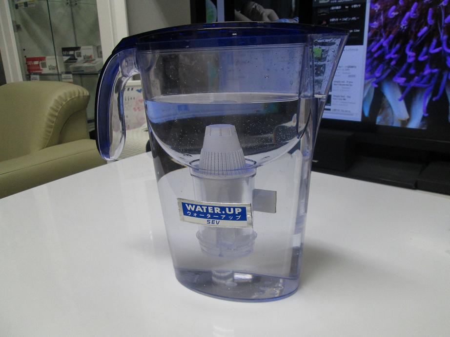 市販のお水と、水道水をSEV着きのポットに入れたお水とで飲み比べしてもらうと。