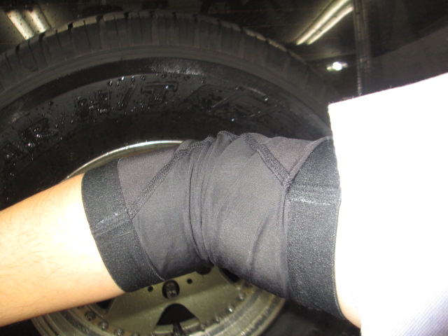 更に右腕に、SEV 肘サポーター3Dを着ける事で右肩の稼動域が俄然