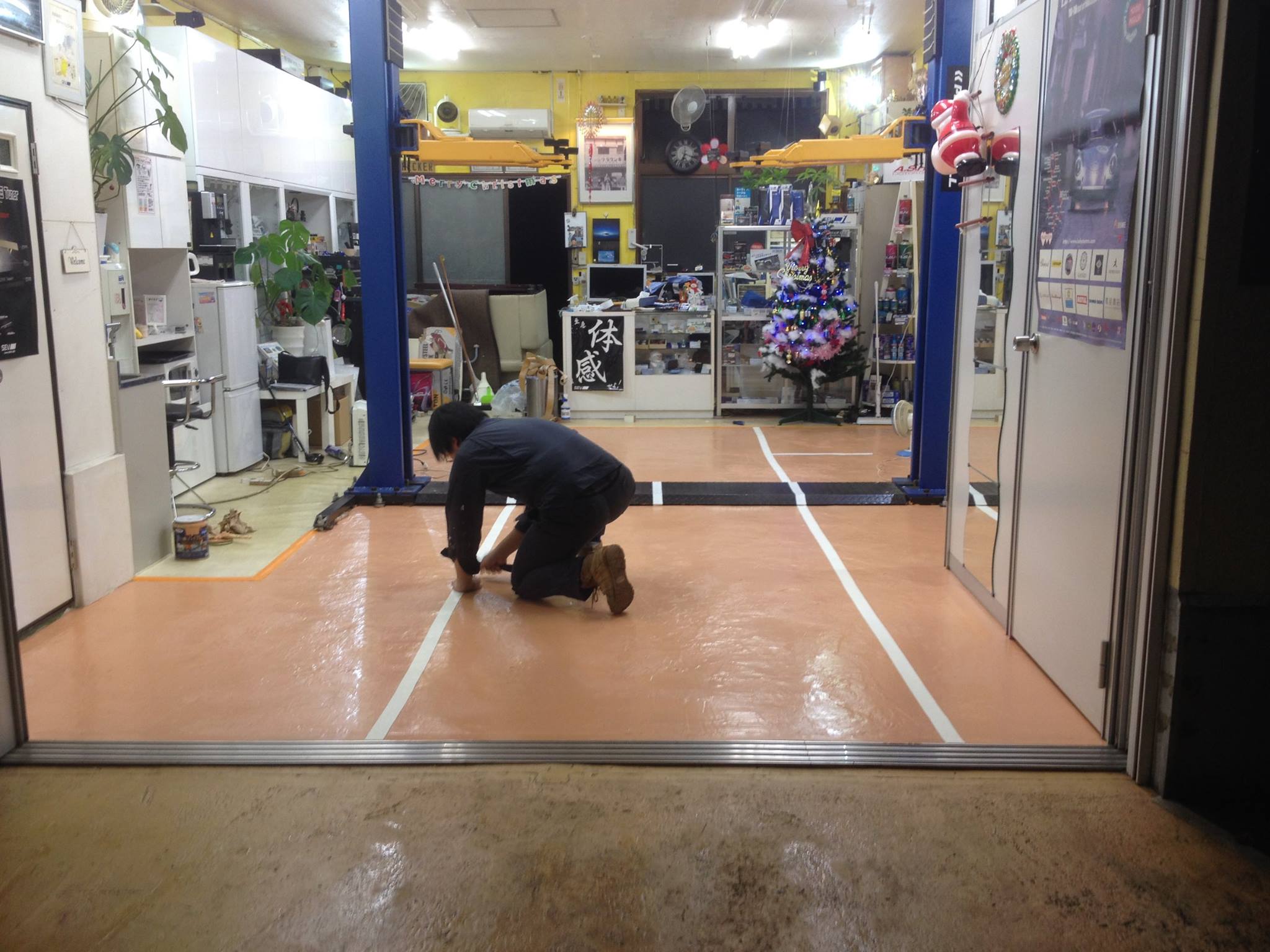そして、今週は床もかなり汚れてきたので床の塗装も行いました。